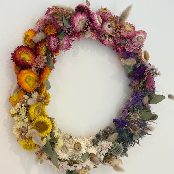 I make dried flower wreaths and bouquets so that people can enjoy colour in their homes all year round. I made one as a commission recently for £45 and I am hoping to sell both online in my Etsy store and locally in Banwell Garden centre. Please contact me to order one or for more details.